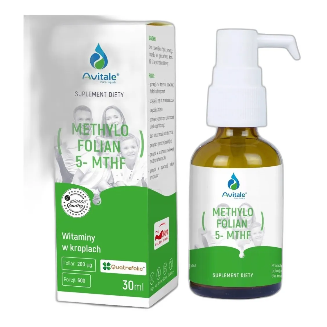 Aliness krople Avitale Methylo Folian Quatrefolic 5-MTHF 200 µg 30 ml — dostępny w naszym sklepie. Suplement diety.