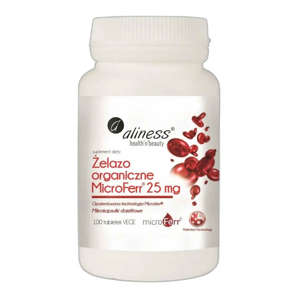 Aliness ŻELAZO ORGANICZNE Przyswajalne z WITAMINA C 100 tabl ANEMIA TLEN — forma ma znaczenie